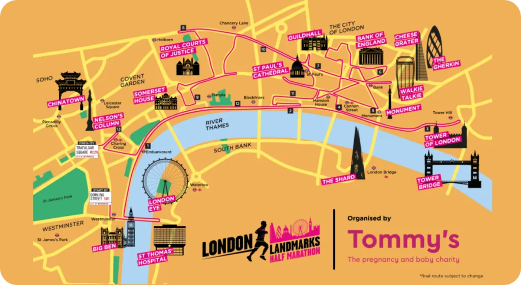 You’ll be one of over 16,000 runners at the start line on Pall Mall, ready to begin your unforgettable journey through the heart of London. Race past the city’s most iconic landmarks including Big Ben, St Paul’s Cathedral, the Tower of London, the London Eye and more!